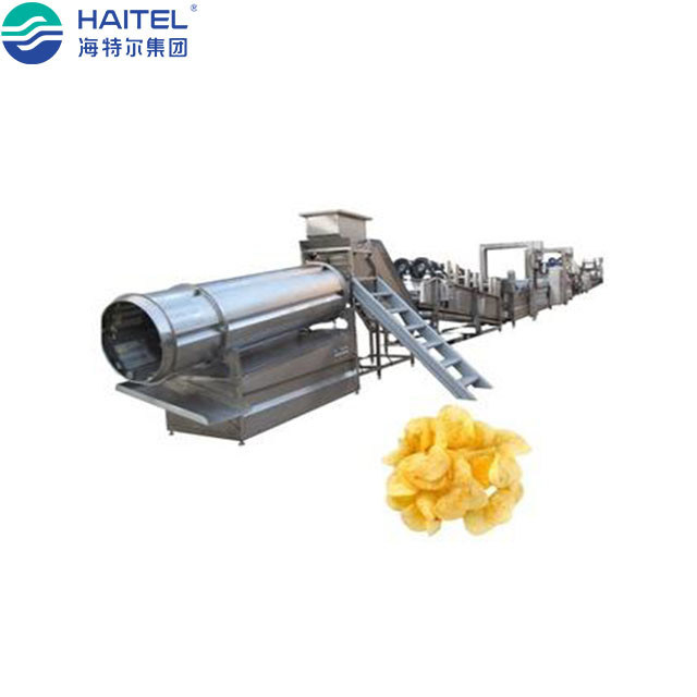 raw material mixing and stirring, pressing dough, printing and molding, frying and molding, seasoning, cooling and transportation, and completing the whole production process from powdered raw materials to finished potato chips. The production lines are made of stainless steel, with stable operation and a high degree of automation. They have won 11 technical patents, and have a fully automatic crushing and recycling mechanism and frying and filtering mechanism to effectively realize the functions of waste material collection and reuse and oil residue filtration